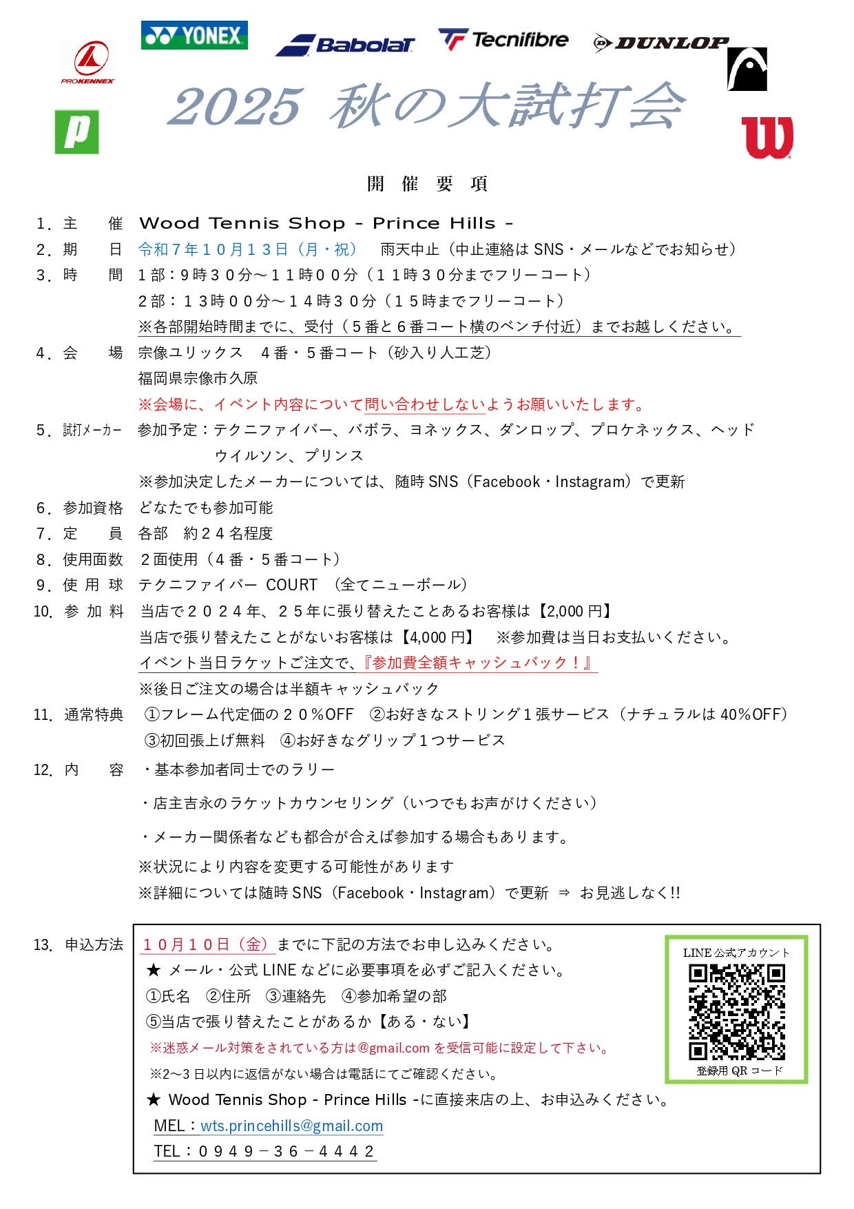 【参加予定メーカー】 Tecnifibre・BabolaT・HEAD・DUNLOP・Wilson・prince・YONEX・Prokennex