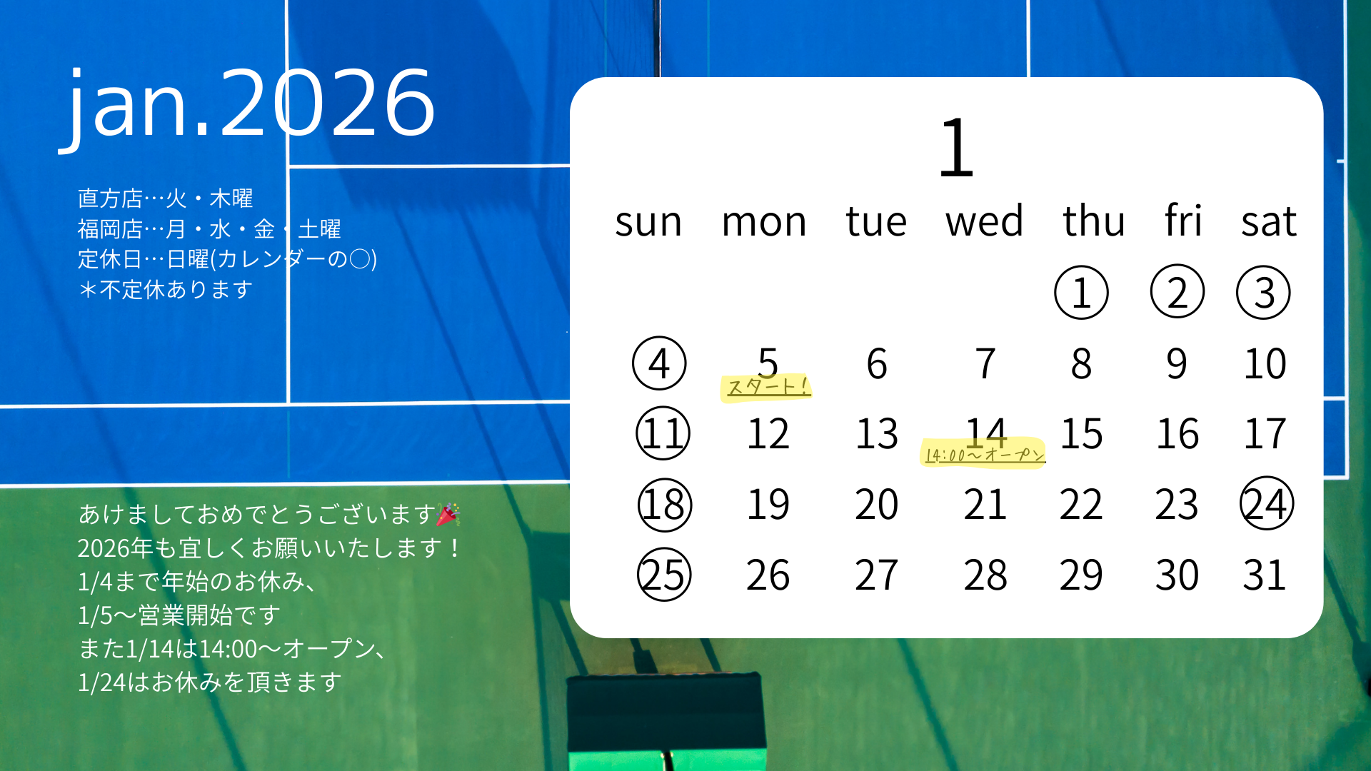 1月14日(火)の福岡市店の営業時間が、14時〜の営業開始時間になります。